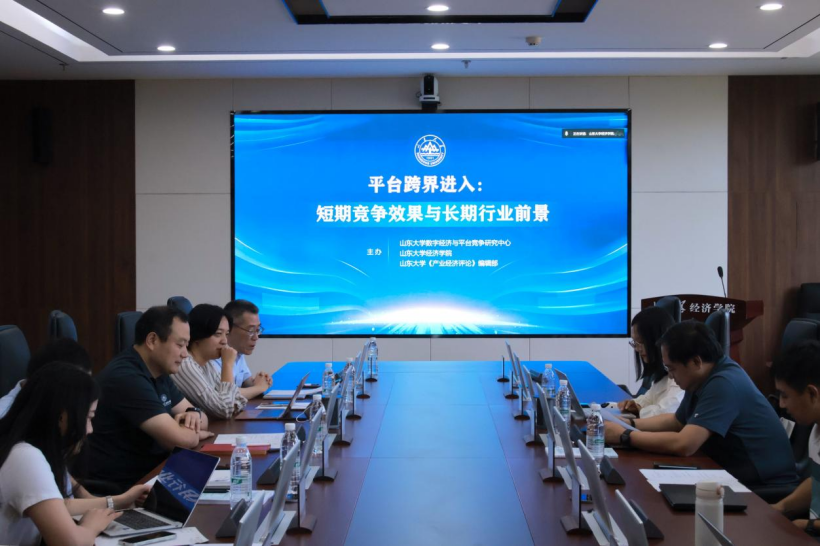 6月21日,由山东大学数字经济与平台竞争研究中心、新黄金城667733、山东大学《产业经济评论》编辑部联合主办的“平台跨界进入:短期竞争效果与长期行业前景”研讨会在中心校区知新楼举行。新黄金城667733常务副院长石绍宾参加会议并致辞。会议由新黄金城667733教授、山东大学数字经济与平台竞争研究中心主任、国务院反垄断反不正当竞争委员会专家咨询组成员、山东大学《产业经济评论》编辑部主任曲创主持。